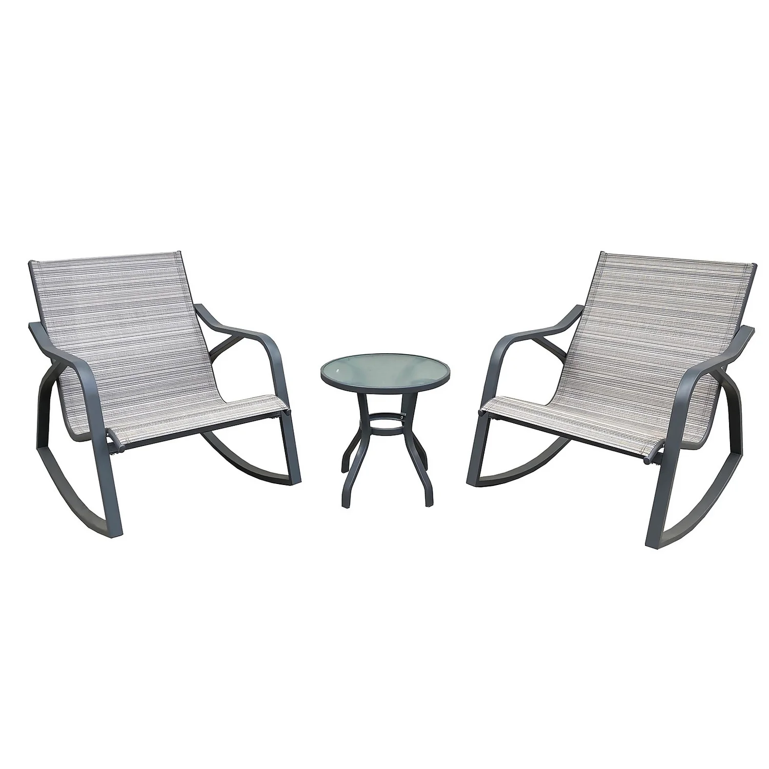 A superbly relaxing selection of garden furniture, this Rio Rocking Bistro Set is designed with your comfort in mind. A stunning glass-topped table is perfectly complemented by two contemporary rocking chairs that come complete. This elegant set is designed to transform your garden into a haven of tranquillity.